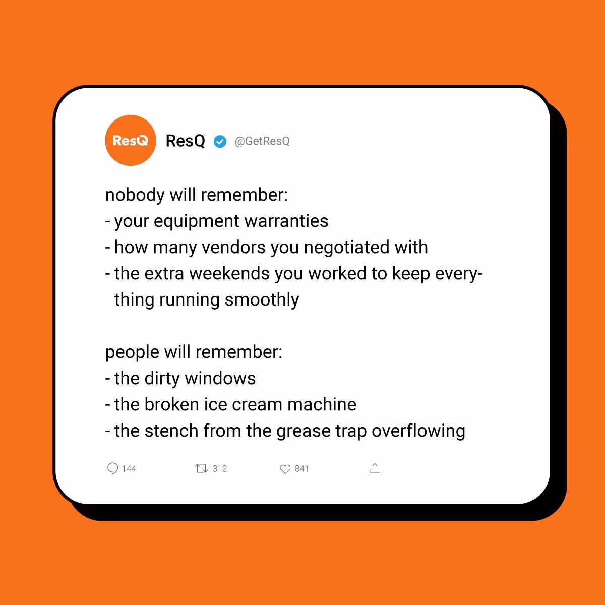 ResQ is the only facilities management platform designed to help restaurant operators to streamline their repair and maintenance operations. Trusted by 5,000+ brands, hear what operators say.